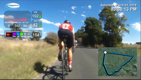 Before the playground in Darnum had been passed, Monk (B), Baggot (R) and Baxter (B) were up the road. J. Timmer-Arends (R) and Parker (R) gave chase with Yeatman (B) sitting on as being on the Blue team, it was his job to sit in By the Music Museum, the break’s lead was about 150m.